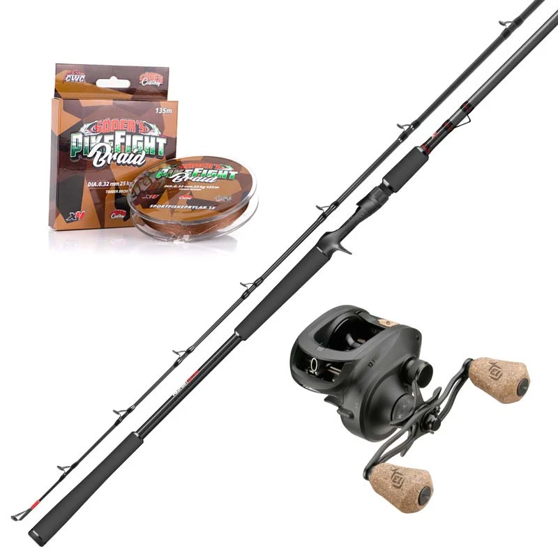 Pike Fight V2 9′- 170g:Eine Rutenserie der Spitzenklasse mit Titanium-Ringen, japanischen 40T Toray Carbon Blanks mit 1k Carbon Verstärkung. Dies sind erstaunliche Ruten für das Hechtangeln, schwere, schnelle Aktion, die es den Blanks erlaubt, sich zu belasten und Ihnen lange und präzise Würfe zu ermöglichen! Ti Forged Guides, Rollenhalter von American Tackle und geteilter EVA-Griff.Perfekte Wahl, wenn Sie eine schwere Rute & Rollen-Kombination suchen, die für schwerere Gummiköder und große Wobbler gemacht ist.Wenn Sie etwas für leichtere Köder und für eine vielseitigere Wurfweite suchen, wählen Sie stattdessen die leichtere Pike Fight V2 – 110g 8’6″.Ti-Forged Guides:Korrosionsschützendes Rahmenmaterial, gehärtete Rahmen für extreme Festigkeit, Anti-Tangle Snagless Frame Design, Nanolite oder Duralite braid-proof Ringe, Slim Profile Ringe reduzieren das Gewicht und sorgen für mehr Wurfweite und längere Schnurlaufzeit.Pike Fight V2 Casting 9′ 170g•Länge: 9’•Länge hinterer Griff (ab Rollenhalter): 43cm•Wurfgewicht (bis zu): 170g•Sektionen: 2 M•Gewicht: 251g•Aktion: Extra Heavy FastConcept A3 BC 300:Die 13 Fishing Concept A3 Gen 2 sind tief gespulte, hochbelastbare Low-Profile-Casting-Rollen. Die Concept A3 Generation 2 wurde mit dem Fokus auf Leistung und Langlebigkeit entwickelt, um Ihnen zu helfen, Trophäenfische mit großen Ködern zu fangen.Die neue Generation der Concept A3 Rollen hat einen HD-Aluminiumrahmen mit Ocean Armor 2 Behandlungsprozess für extreme Korrosionsbeständigkeit, so dass Salzwasser- und Mündungsangler sicher sein können, dass die Rolle dem Missbrauch durch Salz standhält.Ein wahres Meisterwerk und etwas, dem wir nicht widerstehen konnten, mit unserer Pike Fight V2 zu kombinieren, nachdem wir sie zum ersten Mal zusammen ausprobiert hatten. Sie passen extrem gut zusammen und wir versprechen, dass Sie mit diesem Setup nicht enttäuscht werden!Schnur:Our own PikeFight line inspired by Strike Wire X4. An ideal braided line for Pike fishing!In the colour Timber Brown and manufactured by 4 braided threads for max strengt and durability vi have our own favourite line for pike fishing. Suit casting and spinning reel and a line to trust on in every situation. Strenght:0,36 mm / 30kg0,32 mm / 25kg